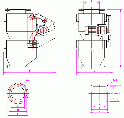 雙層翻板閥用于中、小型除塵器,它是機械式除塵器灰斗鎖氣、卸灰裝置。在水泥工業也是各種磨機、烘干機、料倉、筒庫和閉式輸送系統的鎖氣、卸灰裝置。雙層翻板閥的閥板在物料重力作用下自動開啟,物料下落后,配重杠桿系統使閥板自動復位,防止野風吹入,從而完成物料的輸送。翻板閥利用物料自重交互開啟,通過配備的杠桿系統,保證閥板可靠的復位,防止野風吹入。該閥為物料在重力作用下交替開閉自卸、重錘自動復位機構,具有轉動平穩、節能、卸灰量可調、卸灰鎖氣可靠的性能。有單門、雙門兩種結構,單門雙層翻板閥密封性能較好;雙門雙層翻板閥卸灰量較大。